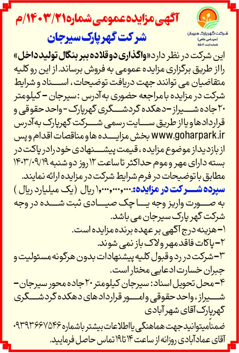 آگهی مزایده/ واگذاری دو قلاده ببر بنگال تولید داخل – شرکت گهرپارک سیرجان